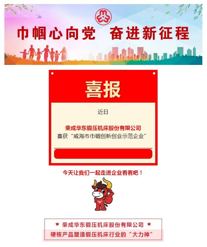 喜訊!榮成華東鍛壓機床股份有限公司喜獲“威海市巾幗創新創業示范企業”